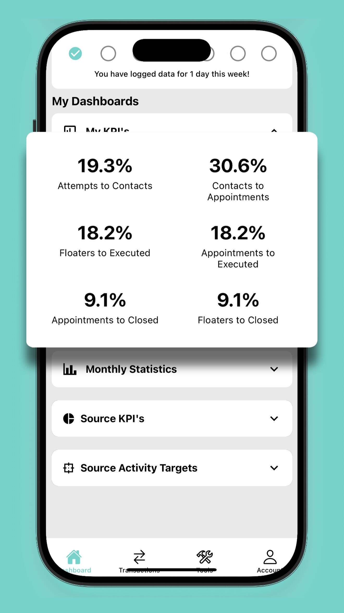 Top-producing agents know their key performance indicators and what drives their sales. Now, you can do the same—no spreadsheets, no formulas, no setup. Just powerful insights, right in the palm of your hand.