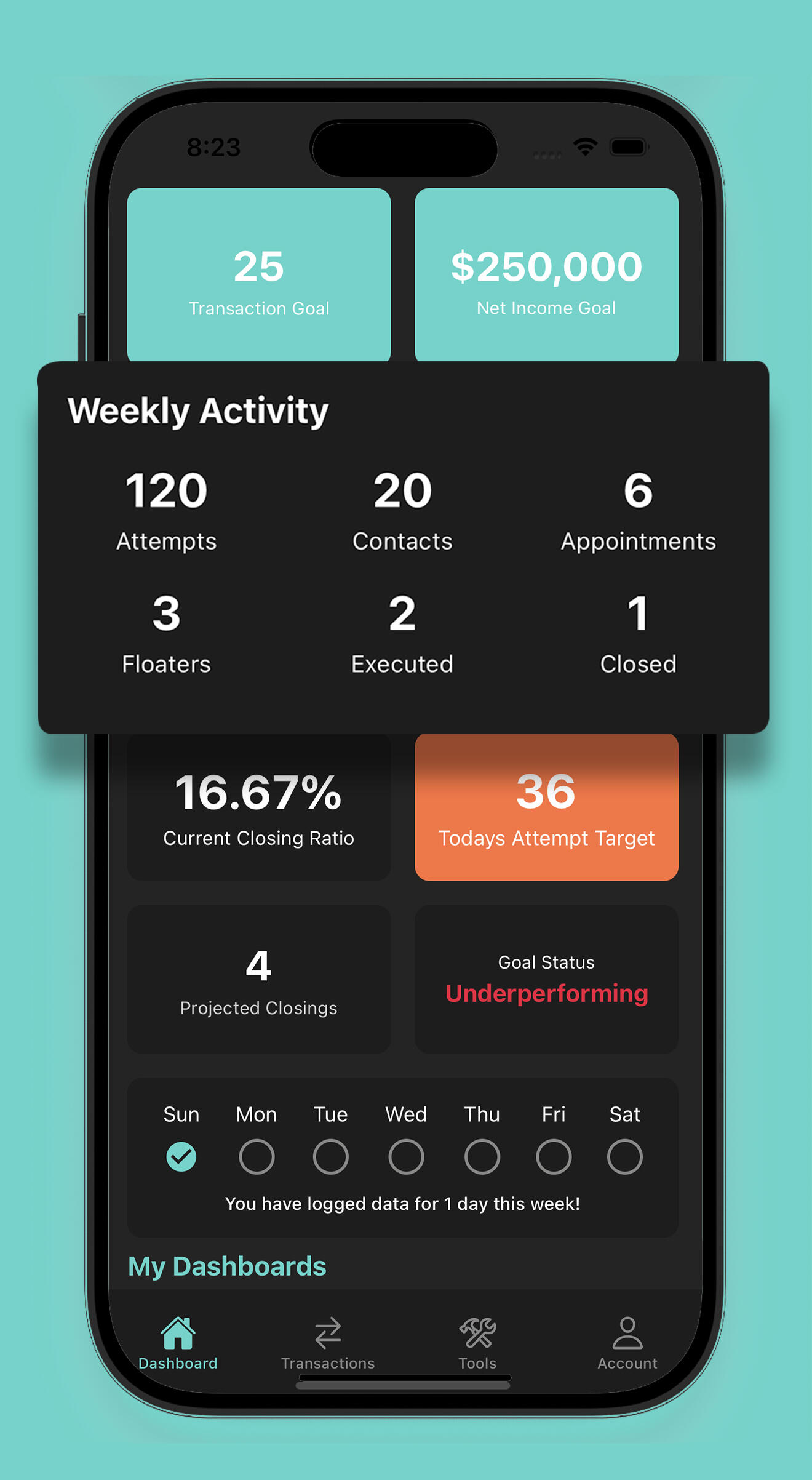 Effortlessly log your dollar-productive activities in real time and instantly gain powerful insights into your performance potential.